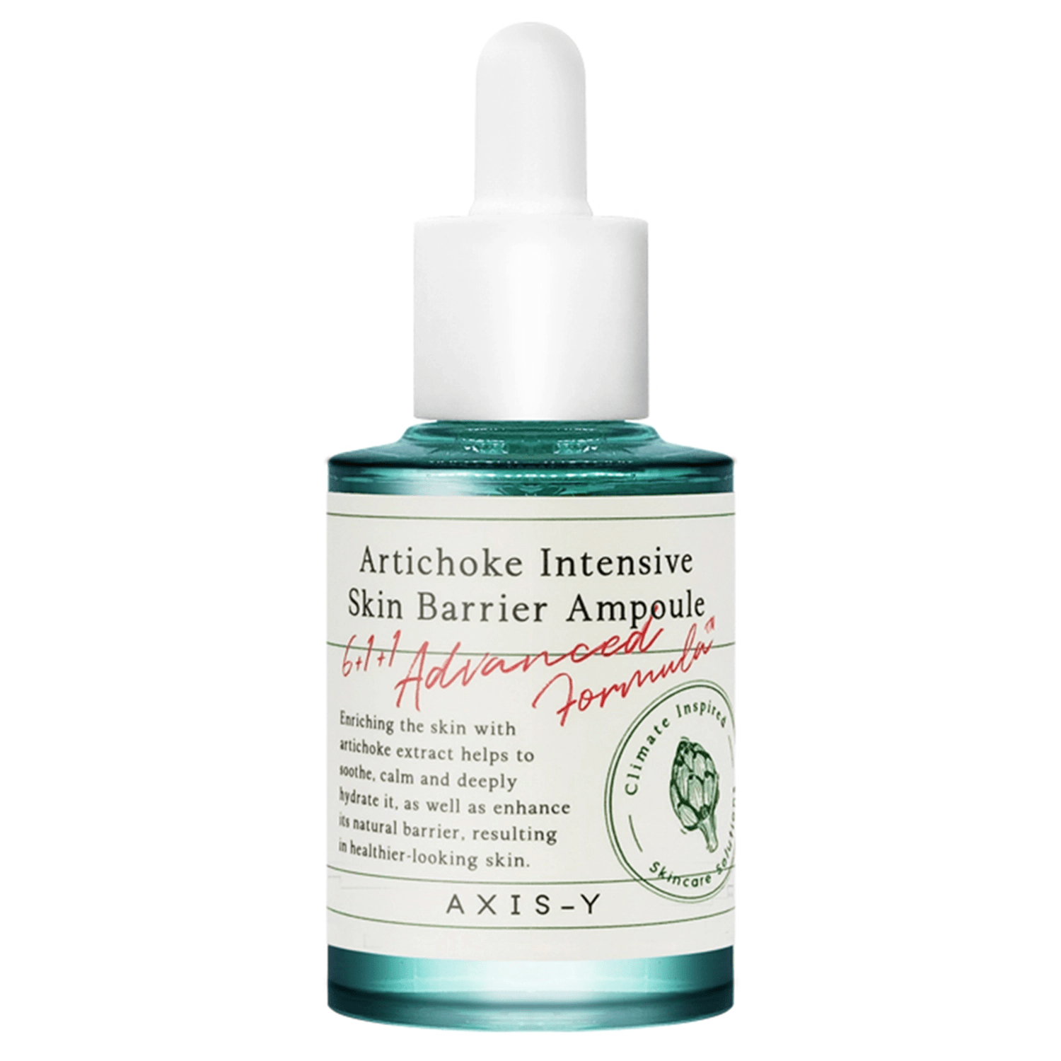 Axis-y Artichoke Intensive Skin Barrier Ampoule - sérum-ampula určené na starostlivosť o tvár, najmä pre normálnu, zmiešanú, suchú a mastnú pleť. Hydratuje pleť, urýchľuje hojenie, má antioxidačný a regeneračný účinok. Obohatený o aloe vera, pomáha hydratovať a upokojovať pleť.