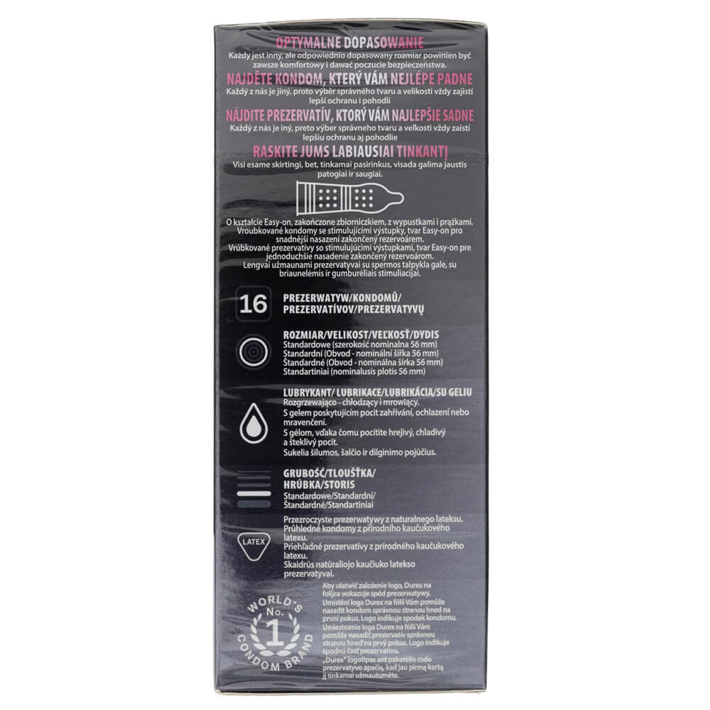 Konzervačné látky Durex Intense Orgasmic s výstupkami a prúžkami a stimulujúci gél Intense poskytujú intenzívnejšie pocity pre ňu a uspokojenie pre vás oboch.