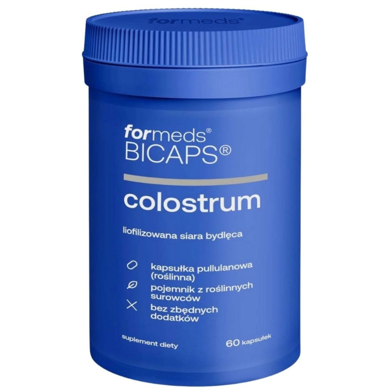 Formeds Bicaps Colostrum je doplnok stravy vo forme kapsúl. Je zdrojom lyofilizovaného hovädzieho Colostrum, získaného v priebehu prvých 24 hodín po narodení. Tým je zaručená jeho plná stabilita a biologická aktivita. Colostrum štandardizovaný na imunoglobulíny (30%), laktoferín (2,5%) a polypeptidy bohaté na prolín (2%).