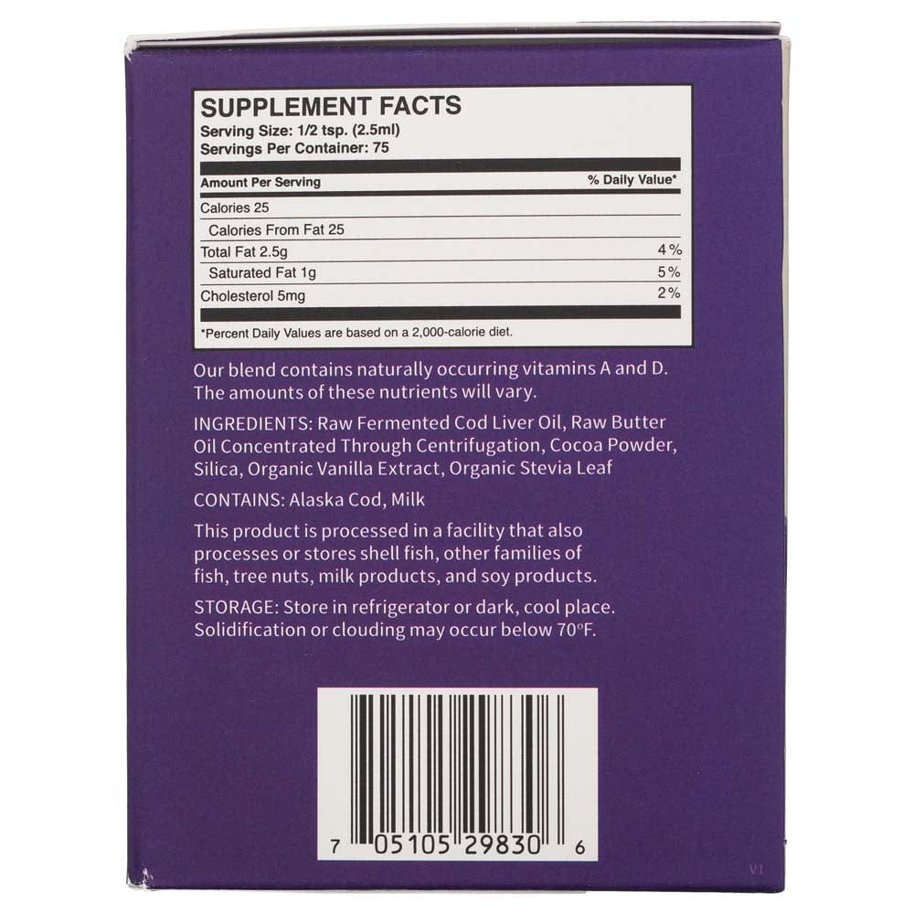 Dr. Weston A. Price D.D.S. zistil, že olej z treščej pečene v kombinácii s maslovým olejom je prospešnejší ako každý z nich samostatne. Na základe tohto, sme vytvorili tento zmiešaný produkt inšpirovaný ním. Je to kombinácia nášho fermentovaného oleja z treščej pečene a nášho koncentrovaného maslového oleja. Tento zmiešaný produkt je bohatý na živiny a plný zdravých tukov, ktoré podporujú zdravie vašej ústnej dutiny a celkové zdravie.