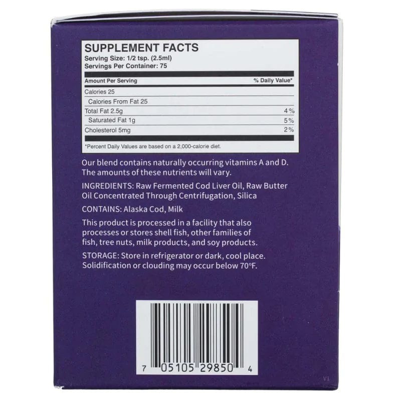Dr. Weston A. Price D.D.S. zistil, že olej z treščej pečene v kombinácii s maslovým olejom je prospešnejší ako každý z nich samostatne. Na základe tohto, sme vytvorili tento zmiešaný produkt inšpirovaný ním. Je to kombinácia nášho fermentovaného oleja z treščej pečene a nášho koncentrovaného maslového oleja. Tento zmiešaný produkt je bohatý na živiny a plný zdravých tukov, ktoré podporujú zdravie vašej ústnej dutiny a celkové zdravie.
