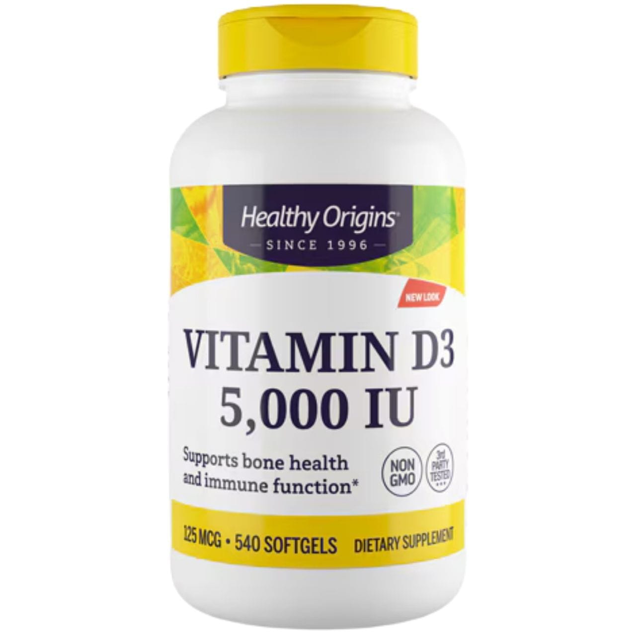 Healthy Origins Vitamín D3 5000 IU je doplnok stravy obsahujúci vitamín D3 vo forme cholekalciferolu získaného z lanolínu. Vitamín D podporuje normálne fungovanie imunitného systému, pomáha udržiavať zdravé kosti a zuby, a podporuje normálne vstrebávanie vápnika a fosforu. Produkt neobsahuje glutén, GMO a konzervačné látky, a je vhodný pre tých, ktorí hľadajú doplnky s čistými zložkami.