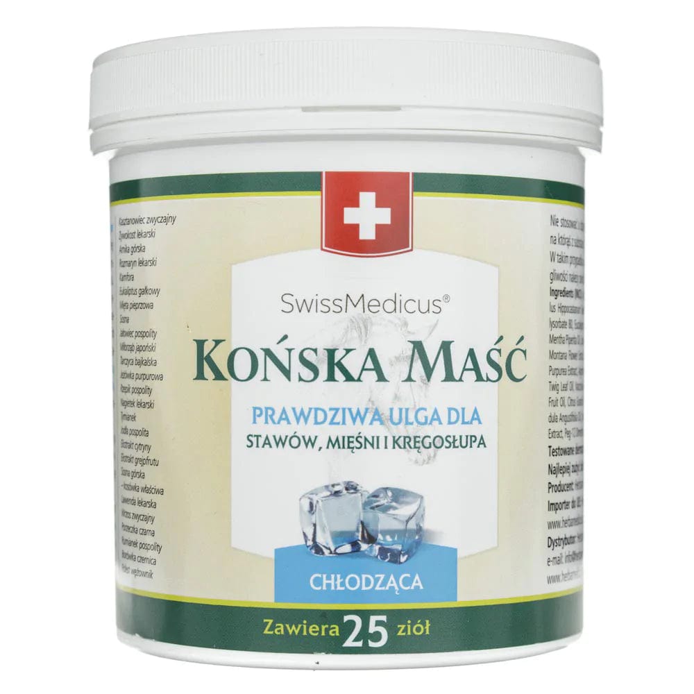 Konská masť chladivá masť poskytuje úľavu pri bolestiach kĺbov , a unavenej chrbtici. Prípravok bol vyvinutý na základe švajčiarskej receptúry a obsahuje 25 bylín a bylinných extraktov . Jeho kvalitu zaručuje receptúra, ktorá kombinuje osvedčené látky s chladivým účinkom.