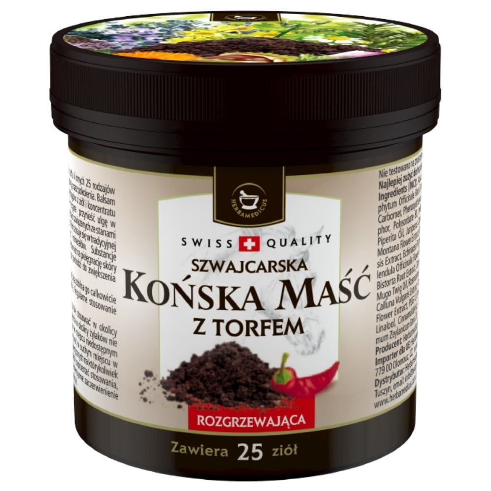 Herbamedicus Konská masť s rašelinou hrejivá je unikátny bylinný balzam vytvorený z vysoko kvalitnej rašeliny a 25 bylinných extraktov . Zloženie založené na tradičnej receptúre poskytuje intenzívny hrejivý účinok a účinne podporuje regeneráciu.
