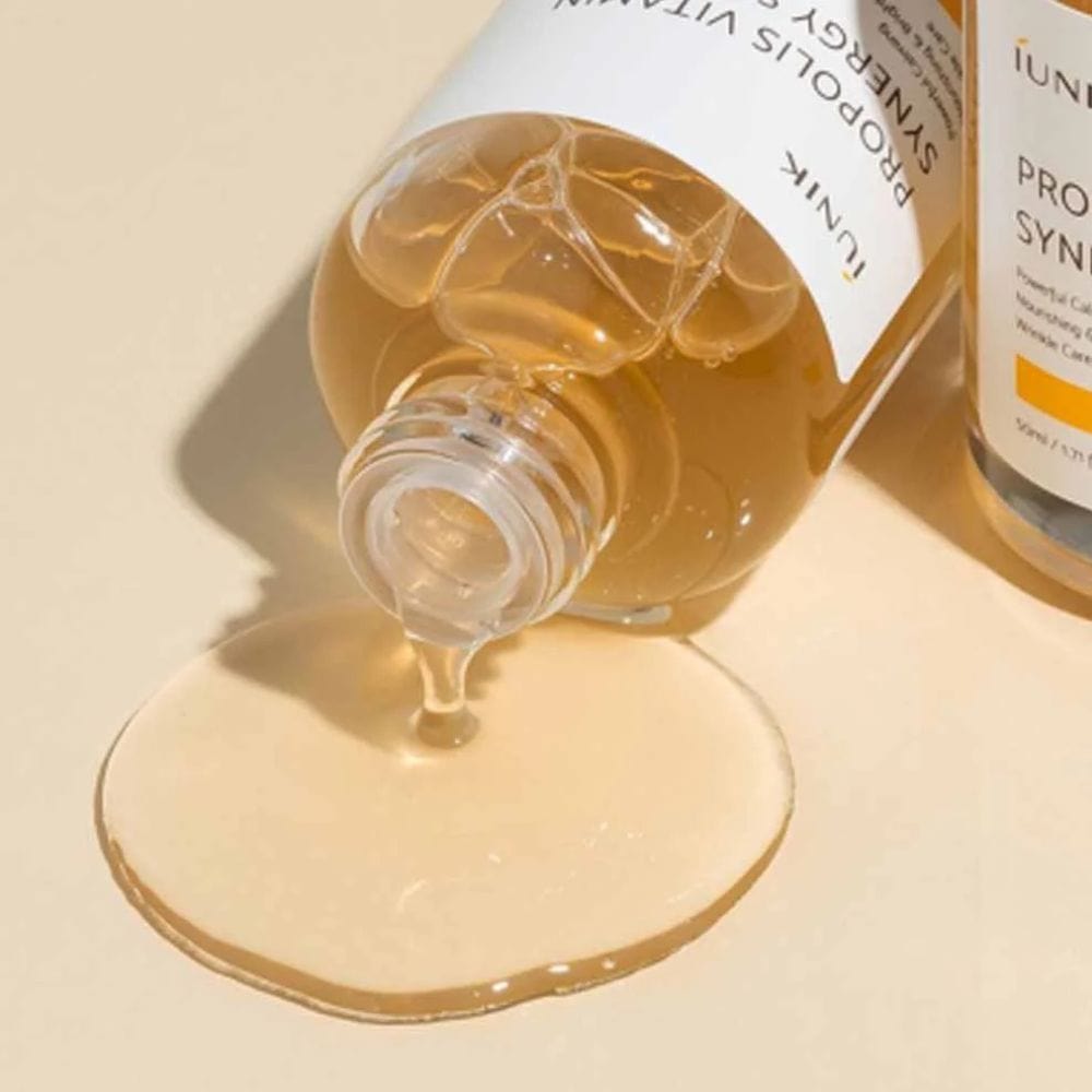 IUNIK Propolis Vitamin Synergy Serum je inovatívne posilňujúce sérum , ktoré využíva synergické účinky propolisu a výťažkov z rakytníka. Formula obsahuje vysoké koncentrácie aktívnych zložiek , ktoré komplexne starostlivosť o stav pokožky – od posilnenia ochranného filmu až po rozjasnenie a vyrovnanie tónu pleti.