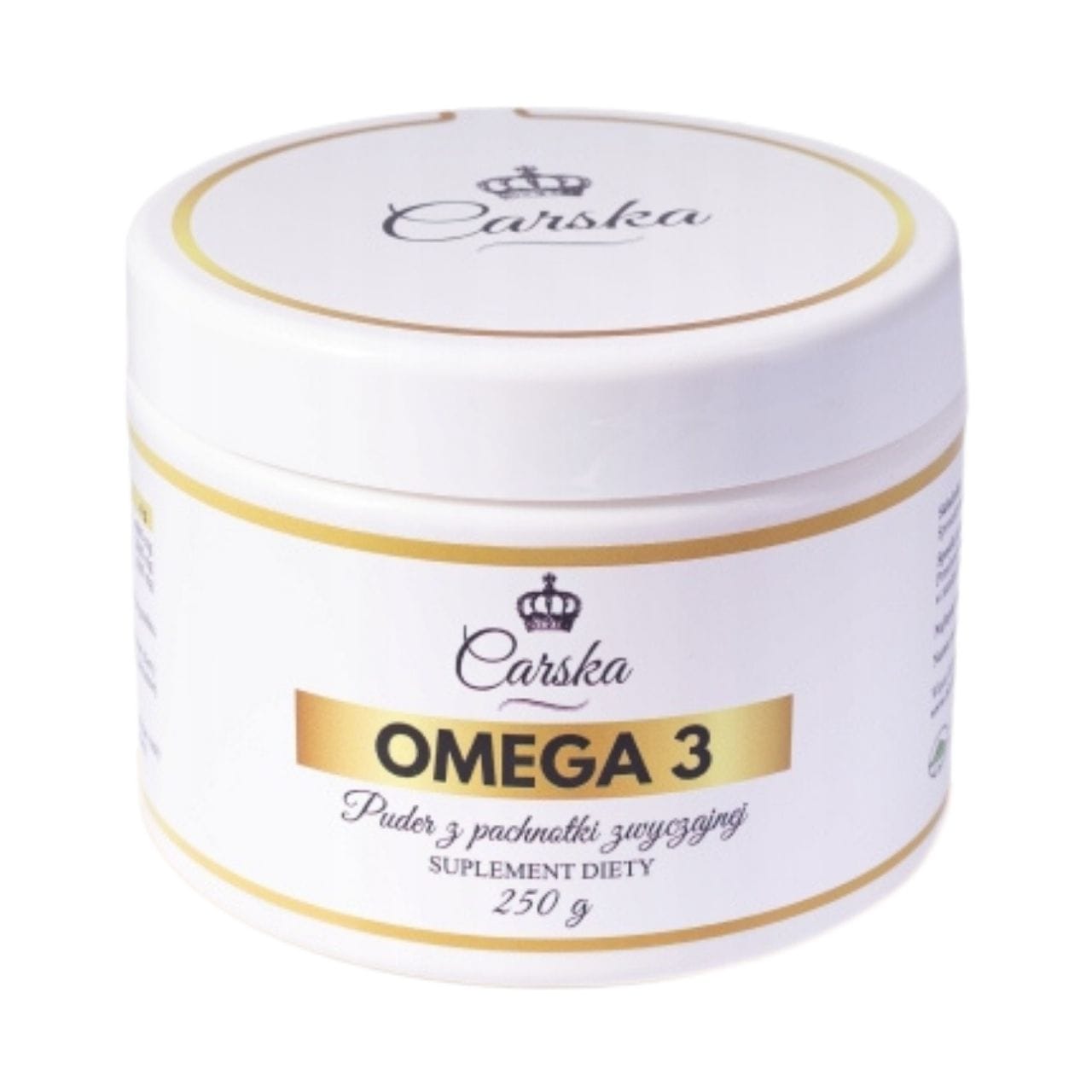 Carska OMEGA 3 Perilla Powder is a natural dietary supplement in powder form. It contains powdered perilla seed oil (Perilla frutescens), which is a source of alpha-linolenic acid (ALA) – 1000 mg per serving.