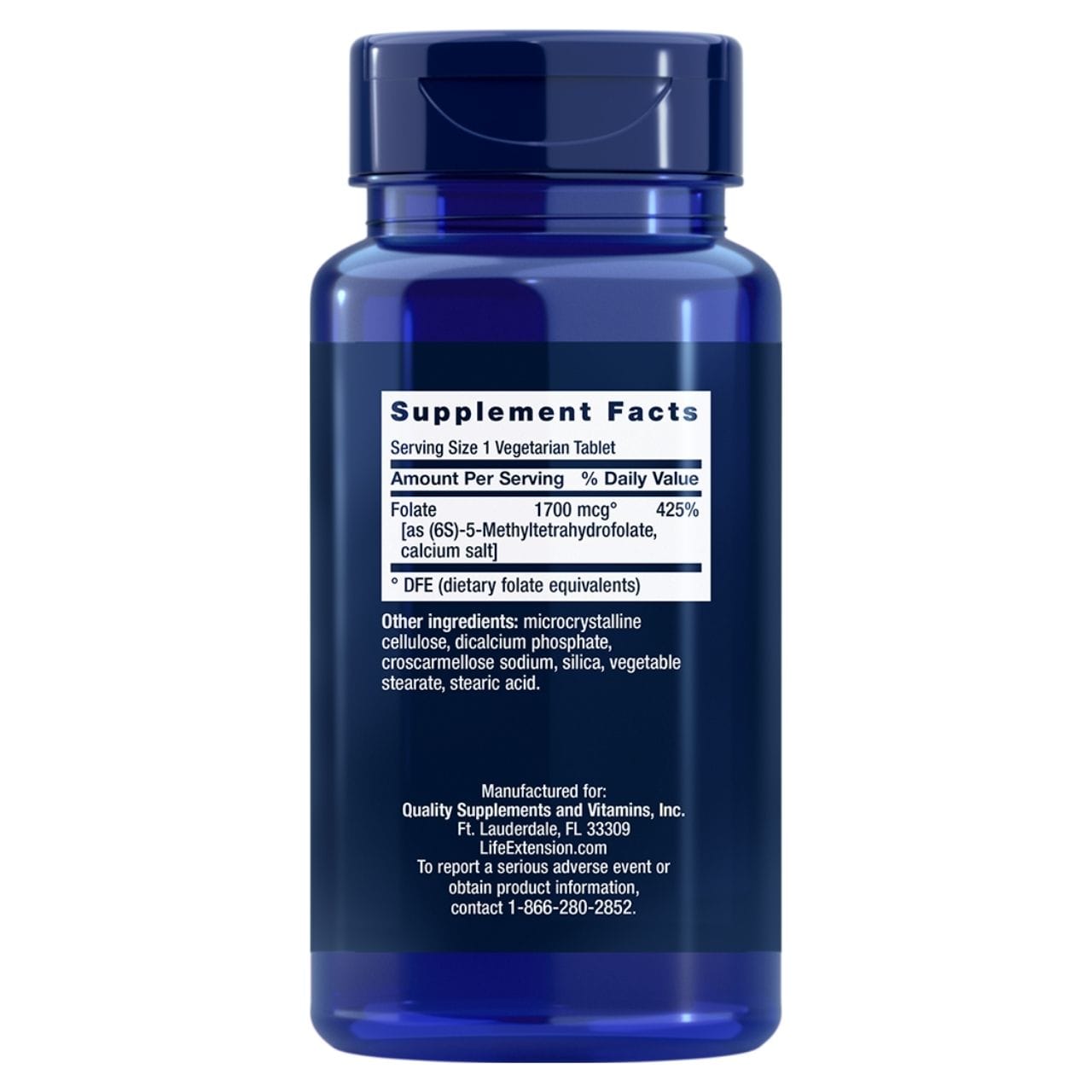 Life Extension Vysoko účinný optimalizovaný folát je doplnok stravy vo forme vegetariánskych tabliet. Obsahuje vylepšený, optimalizovaný kyselinu listovú vo forme (6S) -5-metyl-tetrahydrofolátu.