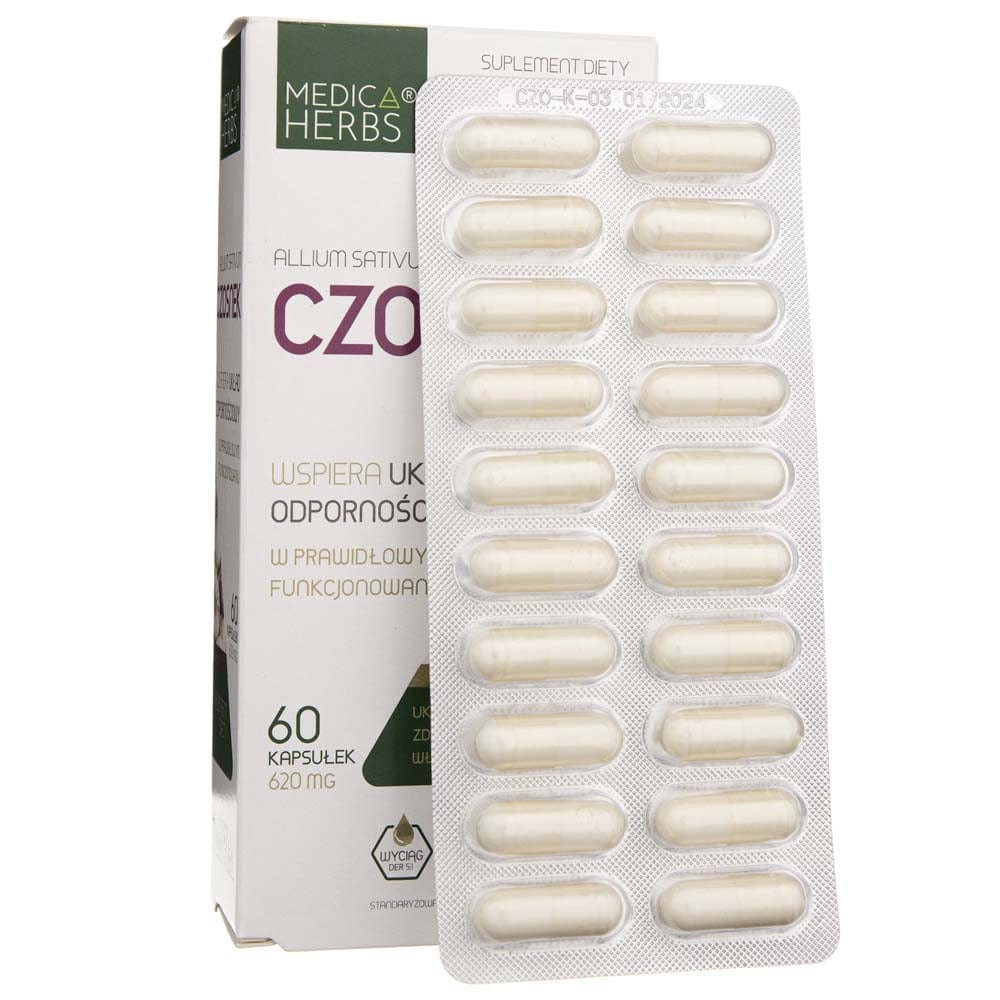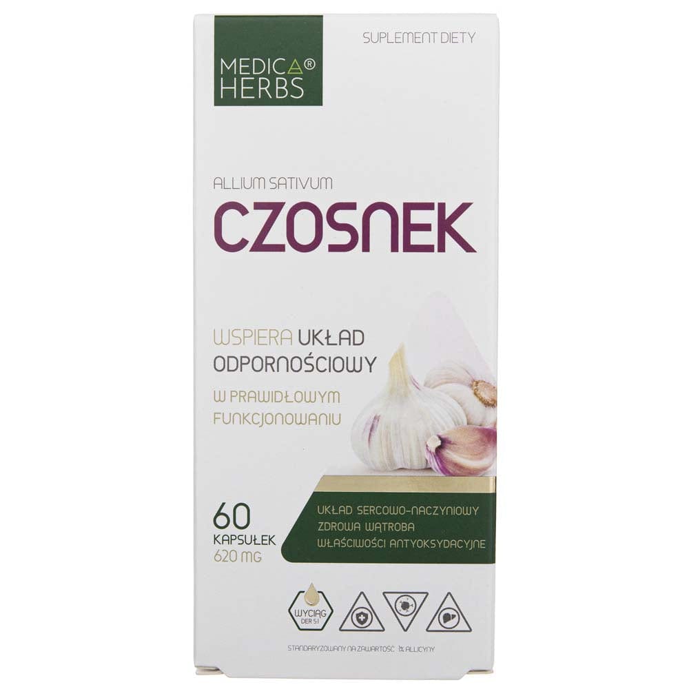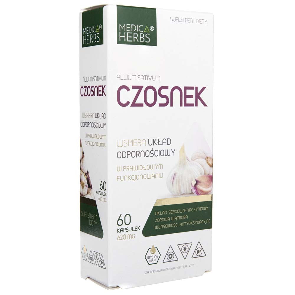 Cesnak od Medica Herbs je doplnok stravy v kapsulách obsahujúci extrakt z cesnakovej cibule Allium sativum.