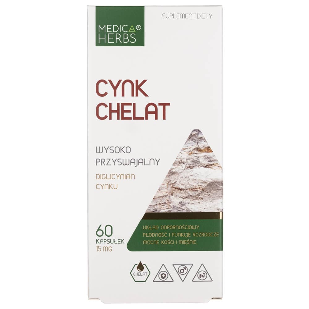 chelát zinku je výživový doplnok vo forme kapsúl Medica Herbs, ktorý obsahuje diglycinát zinočnatý. Zinok v chelátovej forme je vysoko vstrebateľný a organizmus ho dobre znáša.