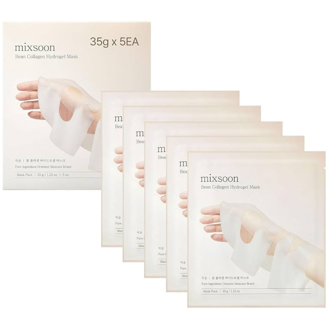 Mixsoon Bean Collagen sú hydrogélové masky s fermentovanými extraktmi zo sóje, jačmeňa, hrušky a granátového jablka a rastlinným kolagénom. Intenzívne hydratujú, vyhladzujú a obnovujú žiarivosť pleti.