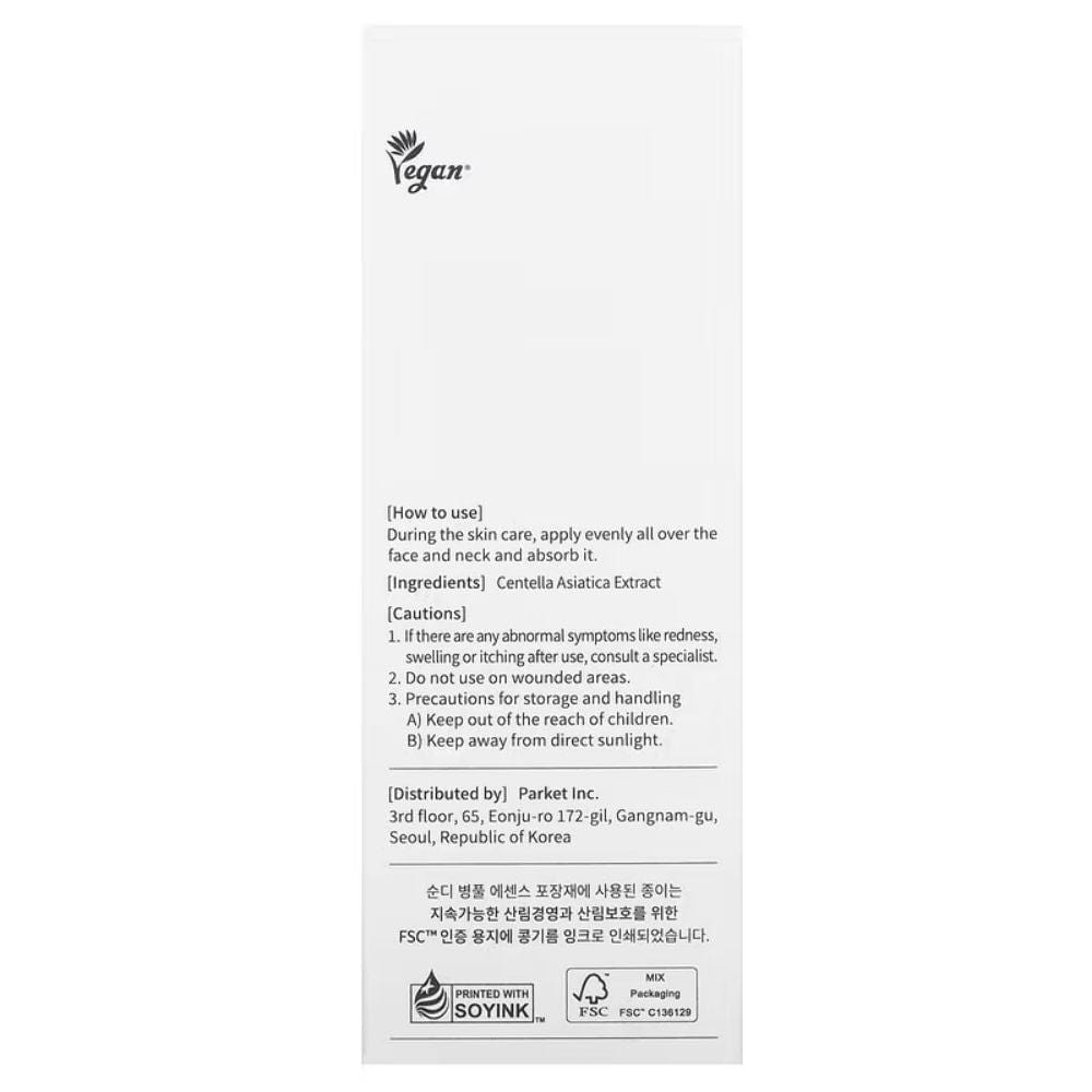 Táto jedinečná esencia využíva plnú silu ázijského pennywortu v jeho najčistejšej forme. Jej minimalistické zloženie je založené na troch starostlivo vybraných zložkách, s extraktom z Centella Asiatica, ktorý je známy svojimi protizápalovými a antioxidačnými vlastnosťami, a hrá hlavnú úlohu.