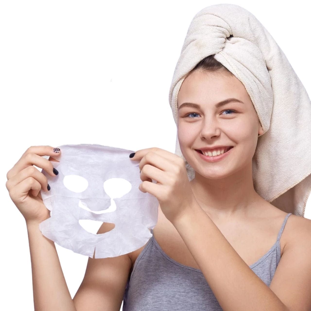Masku naneste na očistenú a tonizovanú pleť, a prispôsobte otvory pre oči a ústa. Nechajte pôsobiť 10-20 minút, potom masku odstráňte a zvyšnú esenciu jemne vklepte do pokožky, kým sa nevstrebe.
