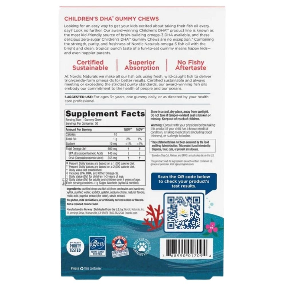 Nordic Naturals Detský DHA je doplnok stravy v podobe lahodných gumených cukríkov s príchuťou tropického ovocia. Špeciálne vyvinutý pre deti od 3 rokov. Obsahuje omega-3 mastné kyseliny (DHA + EPA) bez pridaného cukru. Produkt poskytuje 600 mg omega-3 mastných kyselín na jednu dávku. Produkt neobsahuje pridaný cukor, GMO, umelé príchute, farbivá ani konzervačné látky. Doplňujúce informácie: