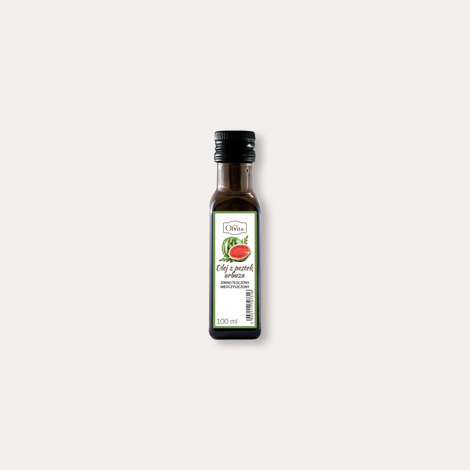 Olej zo semien vodného melóna lisovaný za studena, nečistený, lisovaný pri teplote nepresahujúcej + 40 °C, z nepražených semien vodného melóna. Olej zo semien vodného melóna má jemnú chuť a vôňu, ktorá nedominuje v chuti jedla.