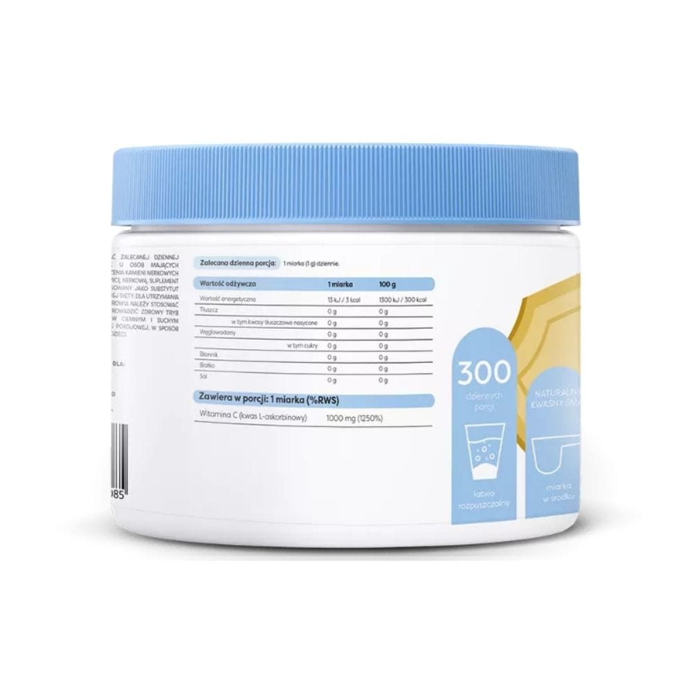Výživový doplnok vo forme prášku obsahujúci vitamín C (kyselinu L-askorbovú) . Na podporu imunitného systému, nervového systému a lepšieho vstrebávania železa. Vitamín C prispieva k normálnej tvorbe kolagénu pre správne fungovanie, okrem iného, kostí, chrupaviek a kože.