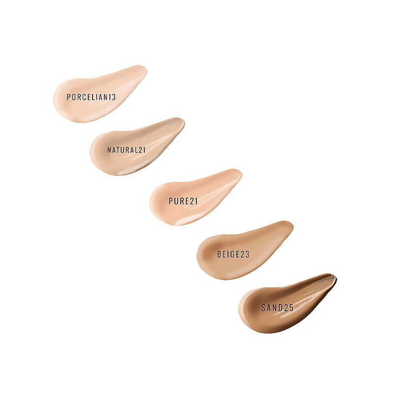 Aqua, Cyklopentasiloxan, Oxid titaničitý, Metyltrimethicone, Propanediol, Butyloctyl Salicylate, PEG-10 dimetikón, dimetikón, niacínamid, trimetylsiloxysilikát, izododekán, triziloxán, síran horečnatý, metylmetakrylátový krížový polymér, etylhexylmetoxycinamát, lauryl PEG-10 Tris (Trimetylsiloxy) silylethyldimetikón, Disteardimonium hektorit,1,2-Hexanediol, Difenyldimetikón/Vinyldifenyldimetikón/Silsesquioxan Crosspolymer, Glyceridy kaprylové/kaprové, Polymetylsilsesquioxan, Žlté železo Oxid železitý (Ci 77492), Hydroxid hlinitý, Triethoxykaprylsilan, Červený oxid železitý (Ci 77491), Butylénglykol, Polysilikón-11, Adenozín, Čierny oxid železitý (Ci 77499), Kyselina polyglutámová, Voda z Chamaecyparis Obtusa, Tokoferol, Kyselina hyalurónová, Parfum, Oxid titaničitý (Ci 77891).