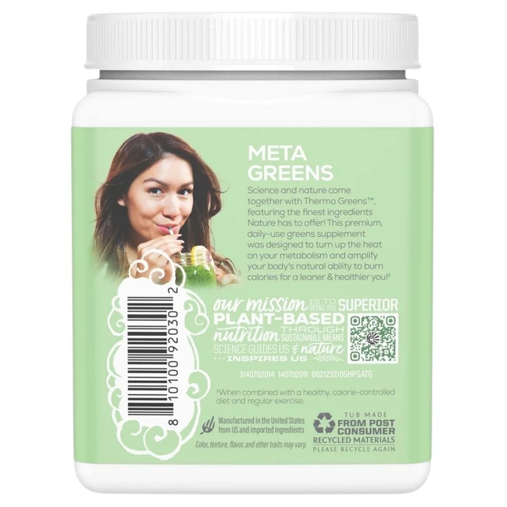 Sunwarrior SHAPE THERMO GREENS je doplnok stravy v práškovej forme obsahujúci zmes 29 druhov ovocia, zeleniny, a bylín . THERMO GREENS je určený na podporu metabolizmu a zdravého zloženia tela vďaka vynikajúcemu termogénnemu katalyzátoru. Je zdrojom vysoko kvalitných, klinicky testovaných zložiek, ktoré majú antioxidačné účinky, bojujú proti voľným radikálom a aktivujú hnedé tukové tkanivo, čím umožňujú spaľovanie tukov a zároveň vyživujú telo dôležitými zelenými látkami.