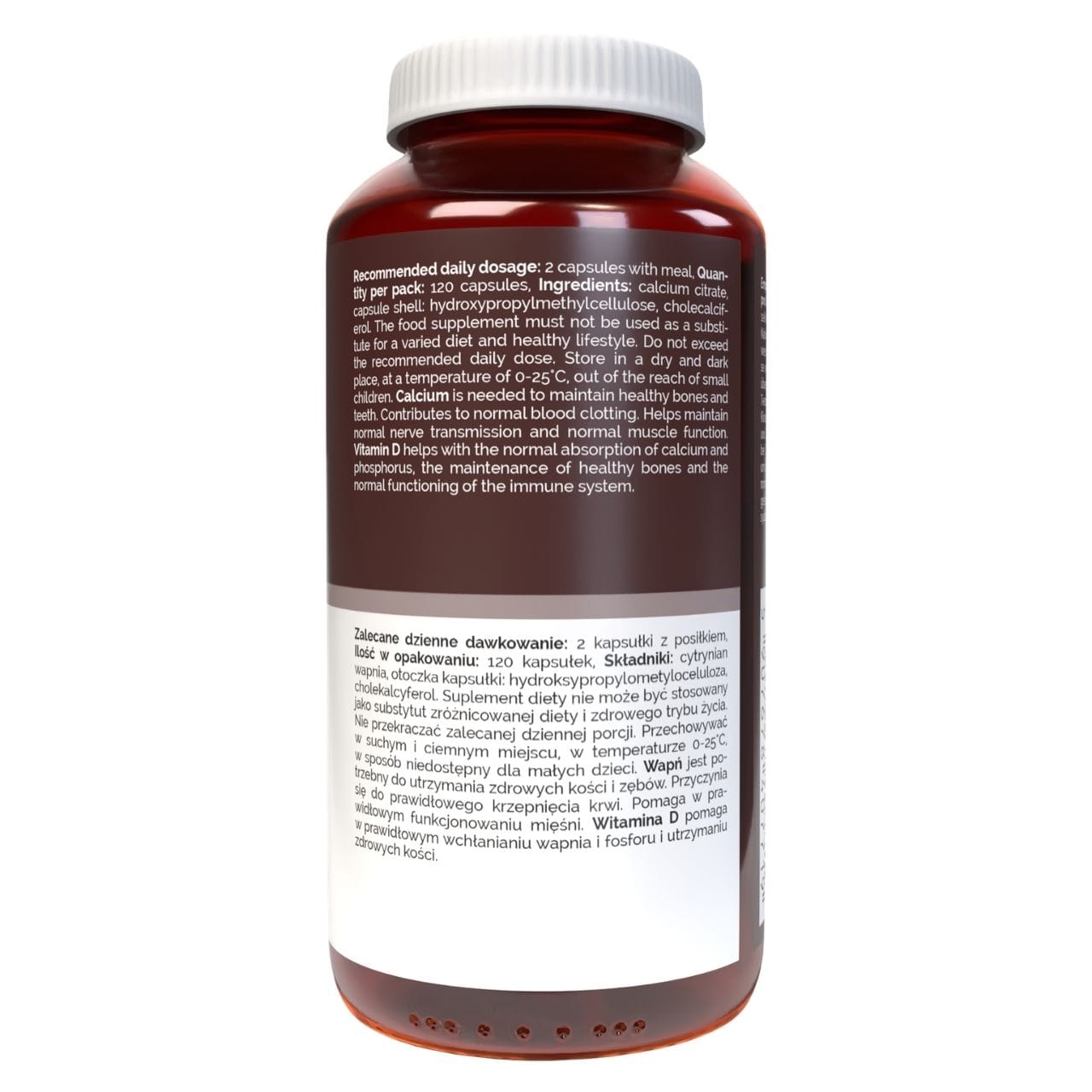 Citrát vápenatý, obal kapsuly (hydroxypropylmetylcelulóza), cholekalciferol (vitamín D3 z lanolínu).