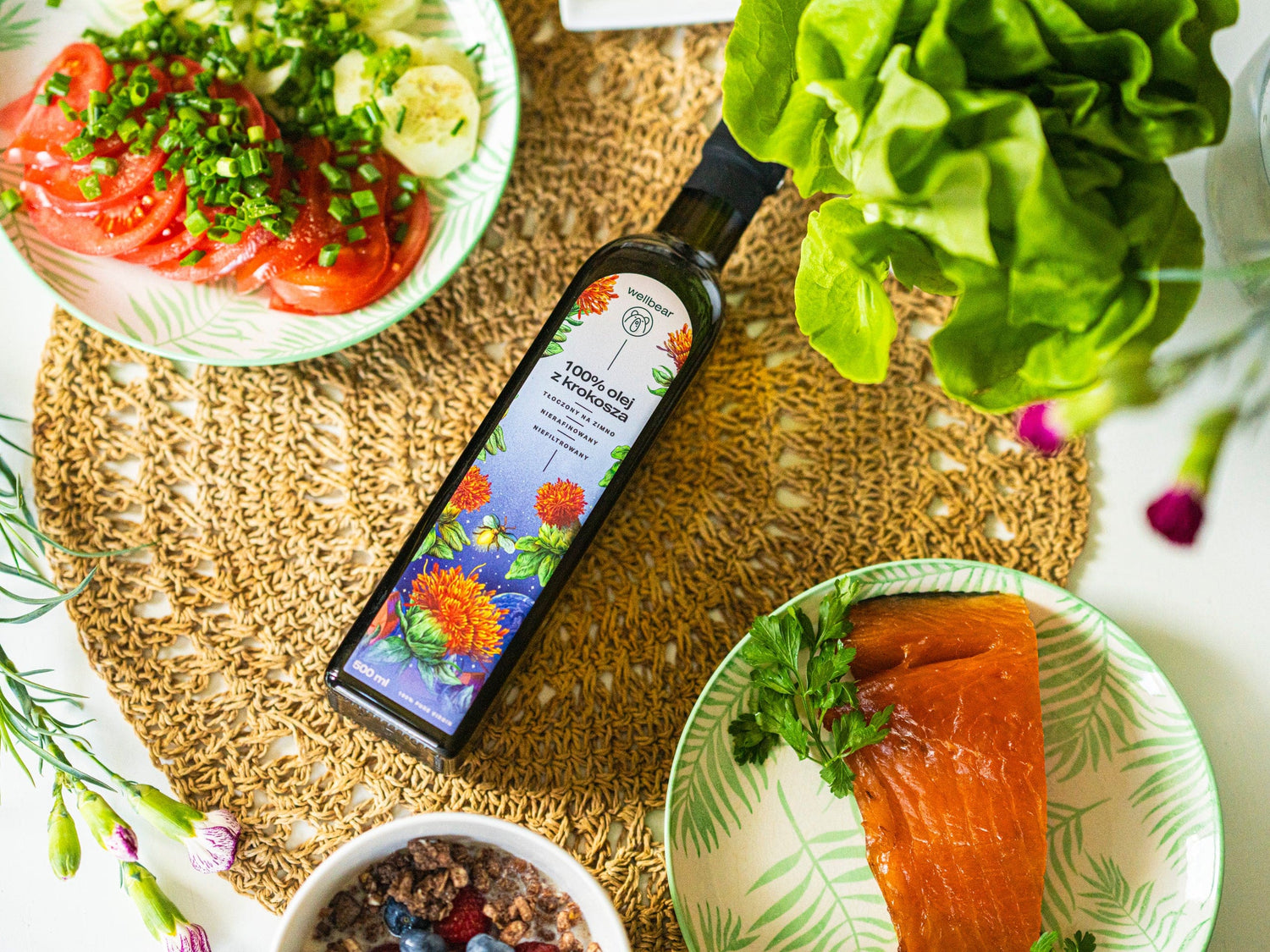 Okrem toho, sa svetlicový olej môže používať aj v care. Vďaka obsahu UNSnasýtených mastných kyselín a antioxidačných vitamínov, je ideálny ako kozmetický prostriedok so proti starnutiu, vlhčujúci, regeneračnýa podporujúci hojenie rána akné. Pri aplikácii na pokožku hlavy a vlasy vyživuje korienkys, stimuluje rast vlasov a zlepšuje stav prameňov. Vo vašej kozmetickej taštičke môže nahradiť aj sUNSkrém, pretože znižuje fotocitlivosť pokožky na spáleniny. Svetlicový olej tiež zmierňuje podráždenie spojené s depiláciou a znižuje frekvenciu následných ošetrení.