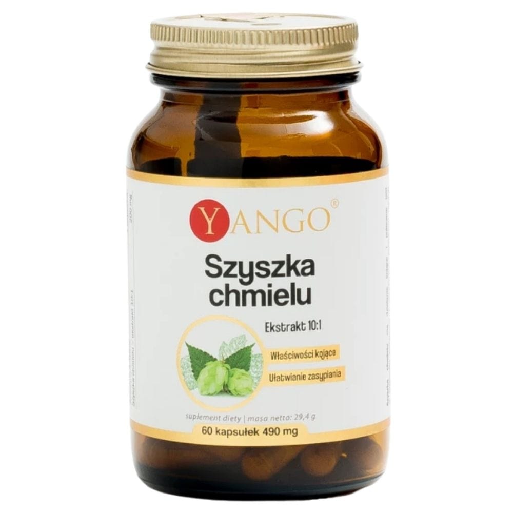 Chmeľové šištičky od Yango, je výživový doplnok v kapsulách obsahujúci extrakt z chmeľových šištičiek.